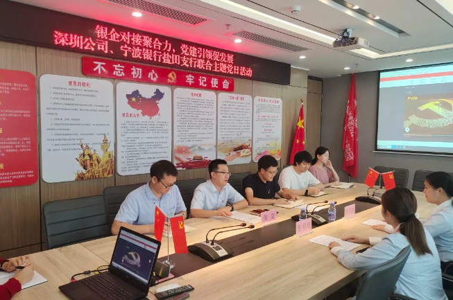 为庆祝中华人民共和国成立73周年,喜迎党的二十大胜利召开。9月23日下午,深圳公司党总支、宁波银行深圳分行盐田支行党组织,共同举办“银企对接聚合力,党建引领促发展”主题党日活动。